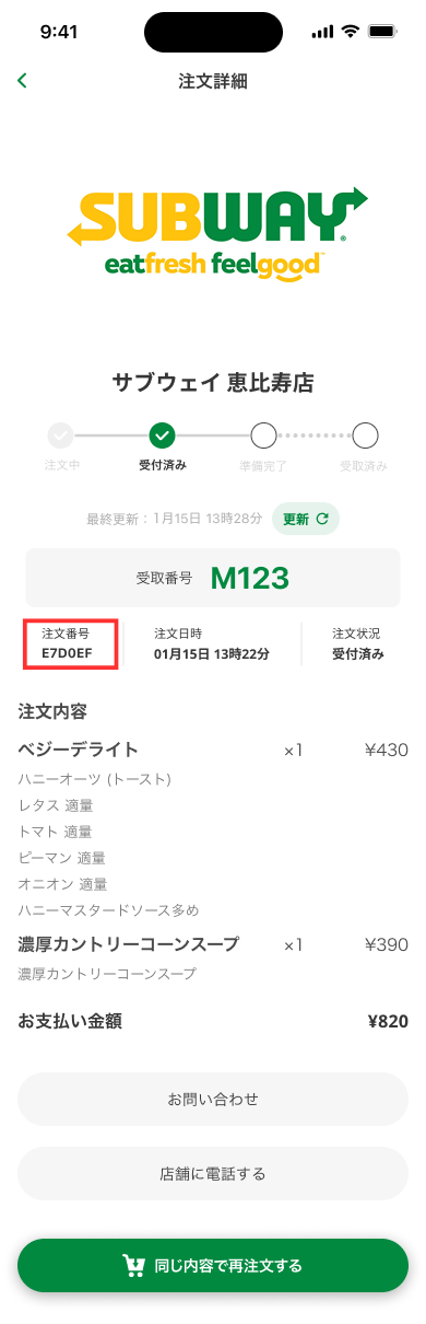 モバイルオーダーで注文した内容と受け取った商品内容に誤りがある場合は、以下のフォームよりお問い合わせをお願いいたします。
